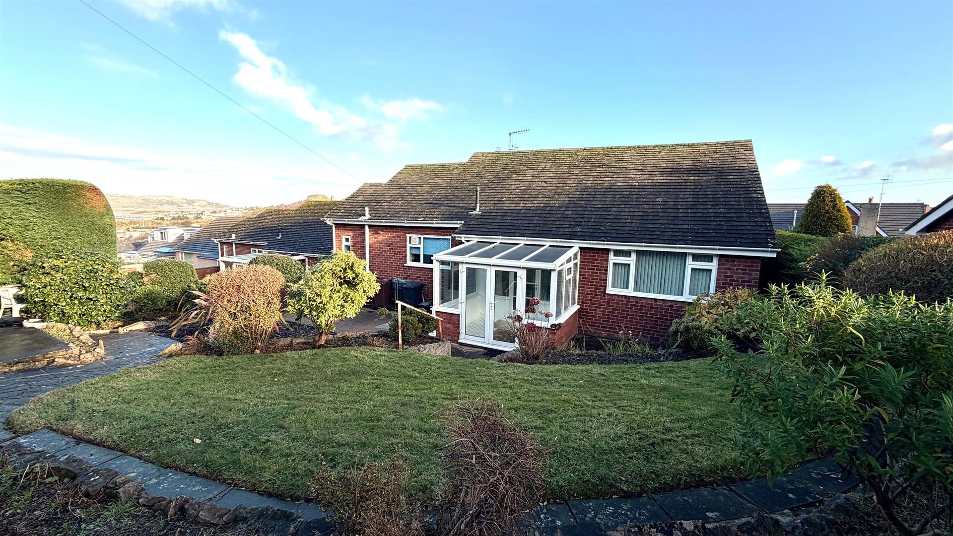THIS SPACIOUS TWO/THREE BEDROOM DETACHED BUNGALOW IS SITUATED IN THIS VERY POPULAR CUL DE SAC LOCATION, WITHIN WALKING DISTANCE OF THE HISTORIC WALLED TOWN OF CONWY AND ALL ITS AMENITIES, AND CLOSE TO ACCESS TO THE A55 WEST AND EAST BOUND EXPRESSWAY. The accommodation briefly comprises: porch, hall, lounge, separate dining room/third bedroom with French door leading to upvc double glazed conservatory; kitchen/breakfast room; separate utility room and two piece washroom; two double sized bedrooms and a four piece bathroom including separate shower stall. The property features gas fired central heating and upvc double glazed windows. Outside there are pleasant gardens to the front and rear; driveway for off road parking leads to a single car garage.THERE ARE SOME LIMITED VIEWS FROM THE REAR GARDEN TOWARDS LLANDUDNO AND THE GREAT ORMETHE PROPERTY IS IN NEED OF SOME UPDATING