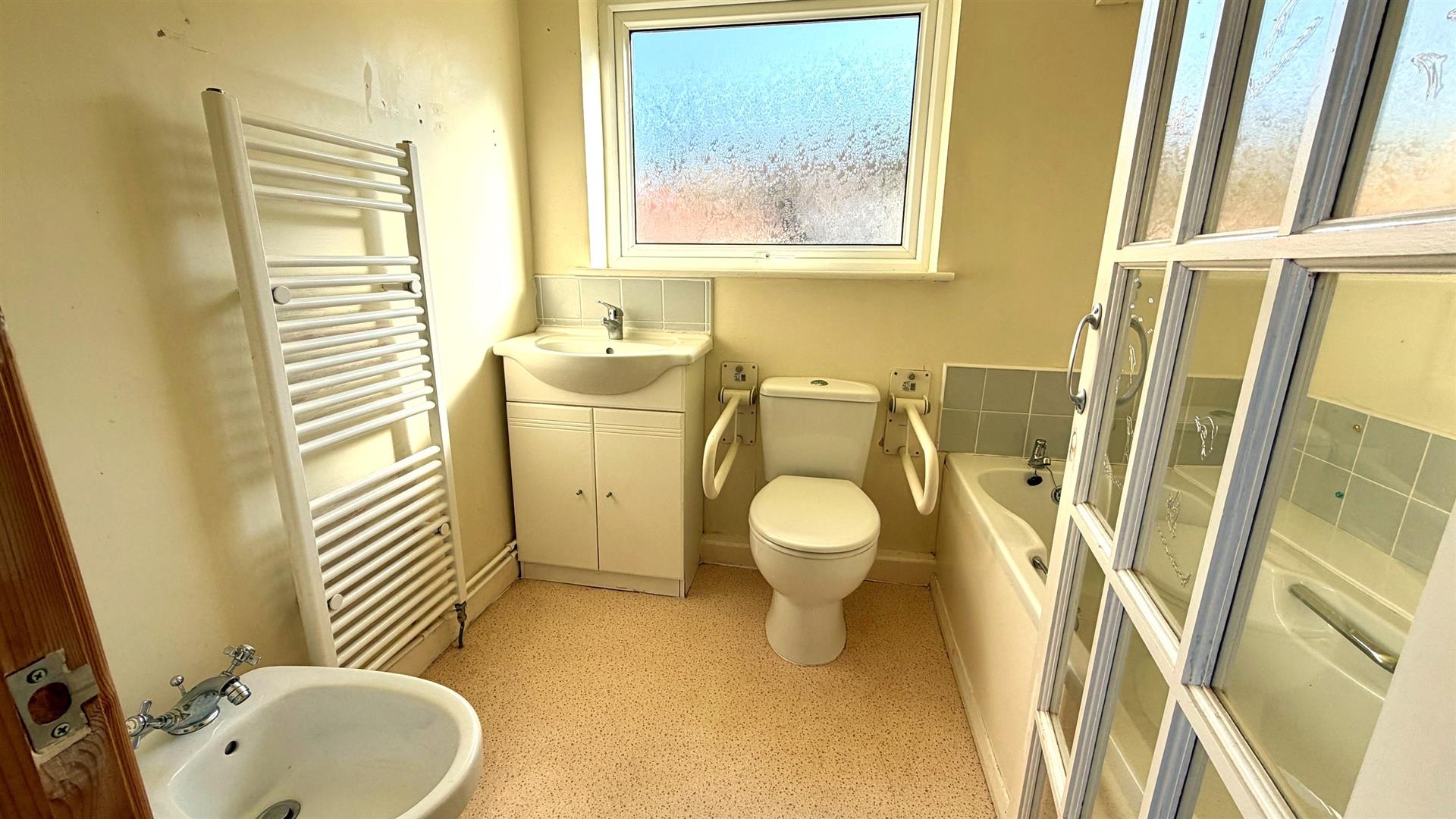 EN-SUITE 4-PIECE BATHROOMIn White comprising panel bath with extractor, vanity wash hand basin and mixer tap, close coupled w.c, bidet, ladder style towel rail, upvc double glazed window.