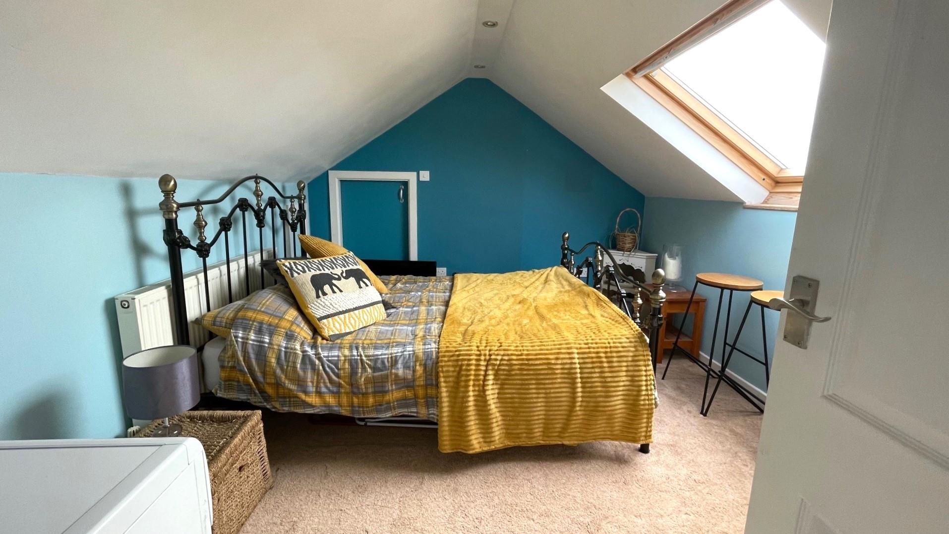 Under eaves storage, radiator, Velux window, sea and Little Orme views.