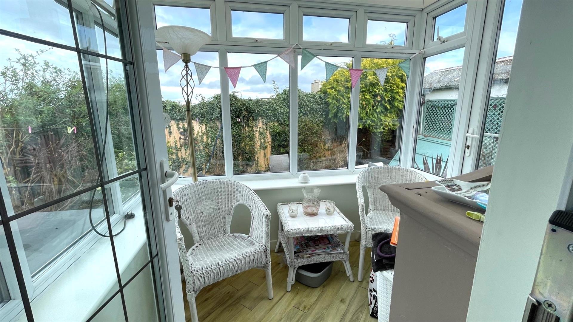 Polycarbonate roof, double glazed door to garden, distant views to sea and Little Orme.
