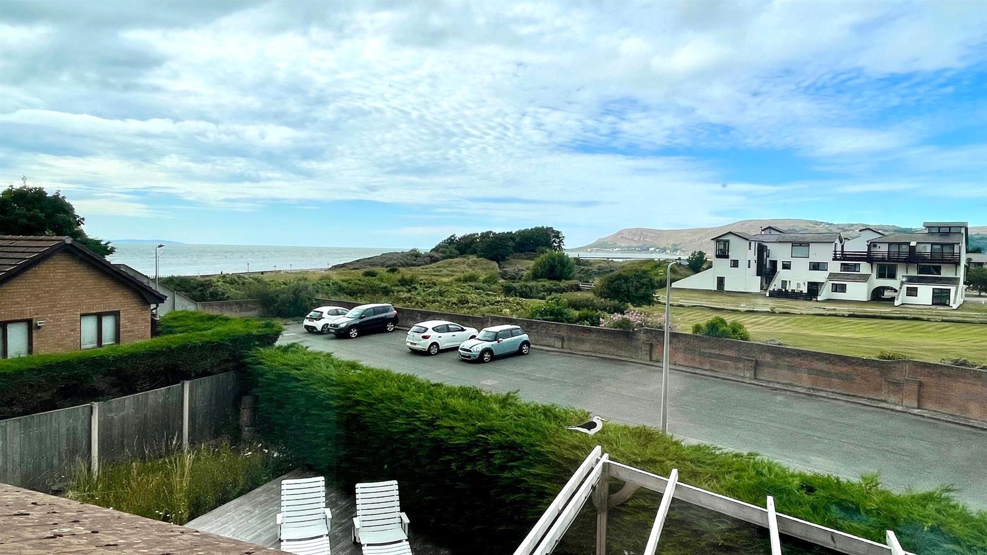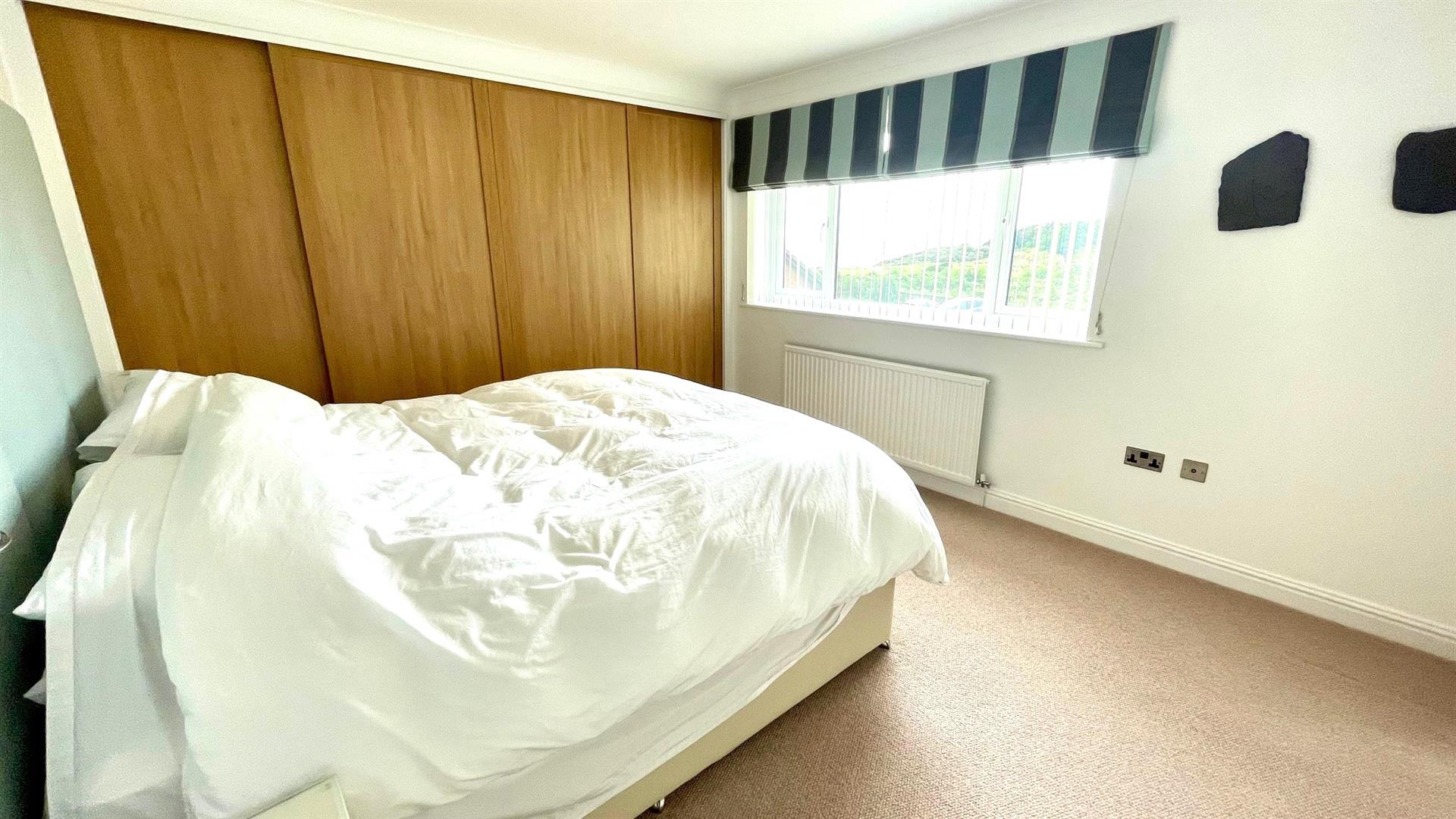TV point, coving, full width built in wardrobe with sliding doors, hanging rails and shelving, radiator, upvc double glazed window with views to The Great Orme and Estuary.