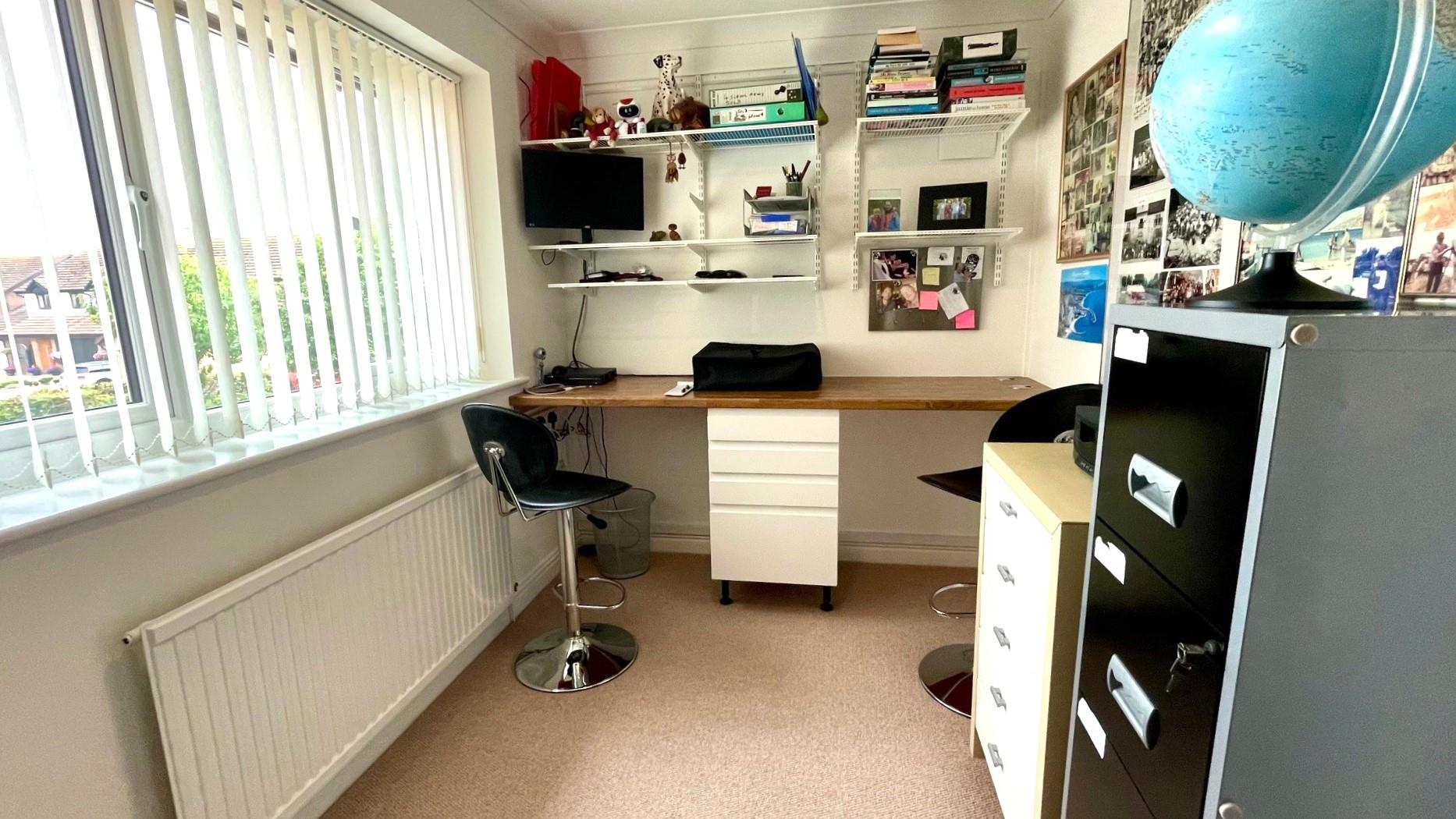 Coving, upvc double glazed window to front, fitted desk and drawers, upvc double glazed window to front, radiator.