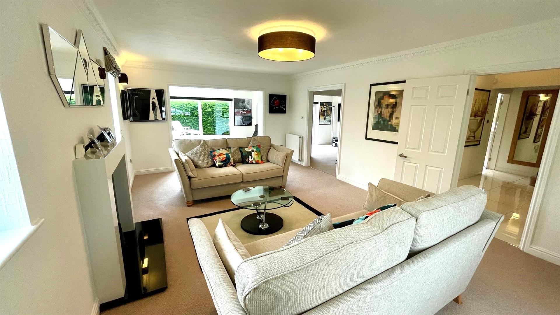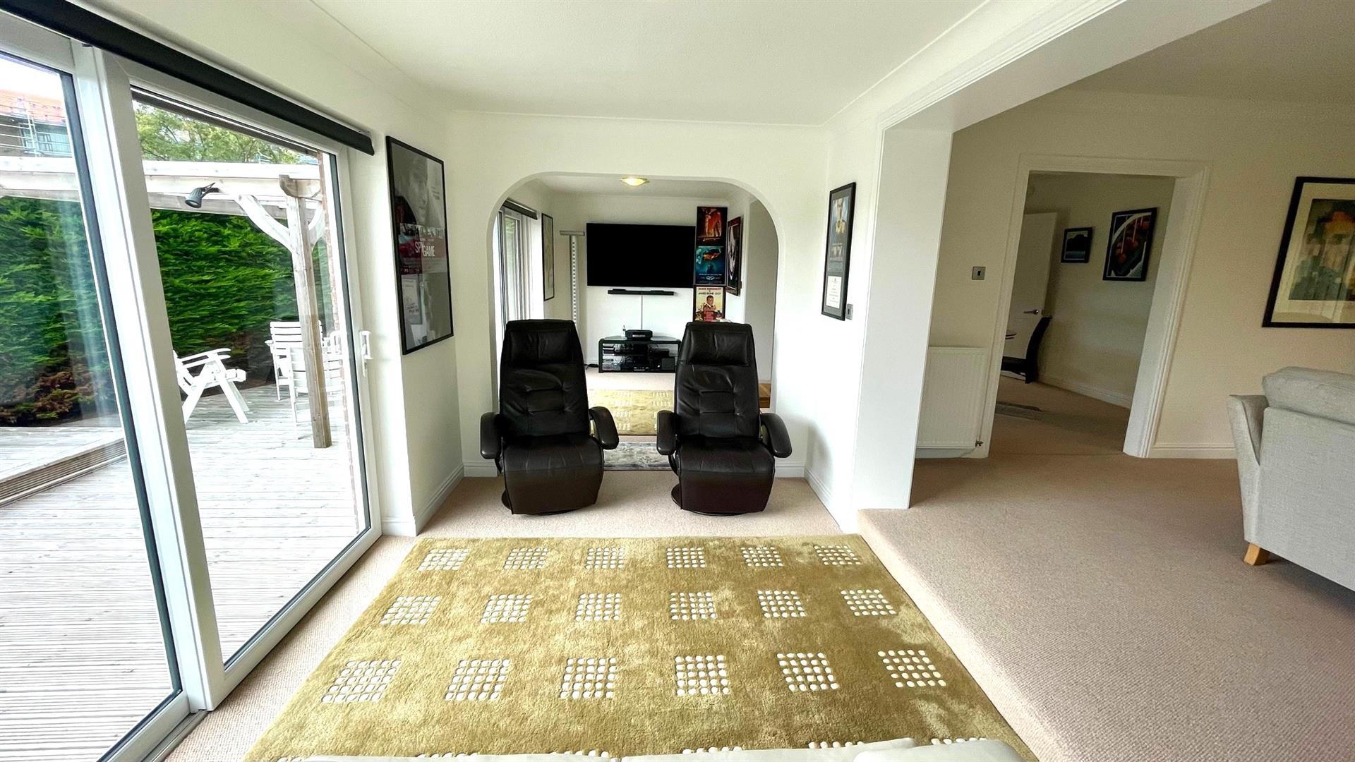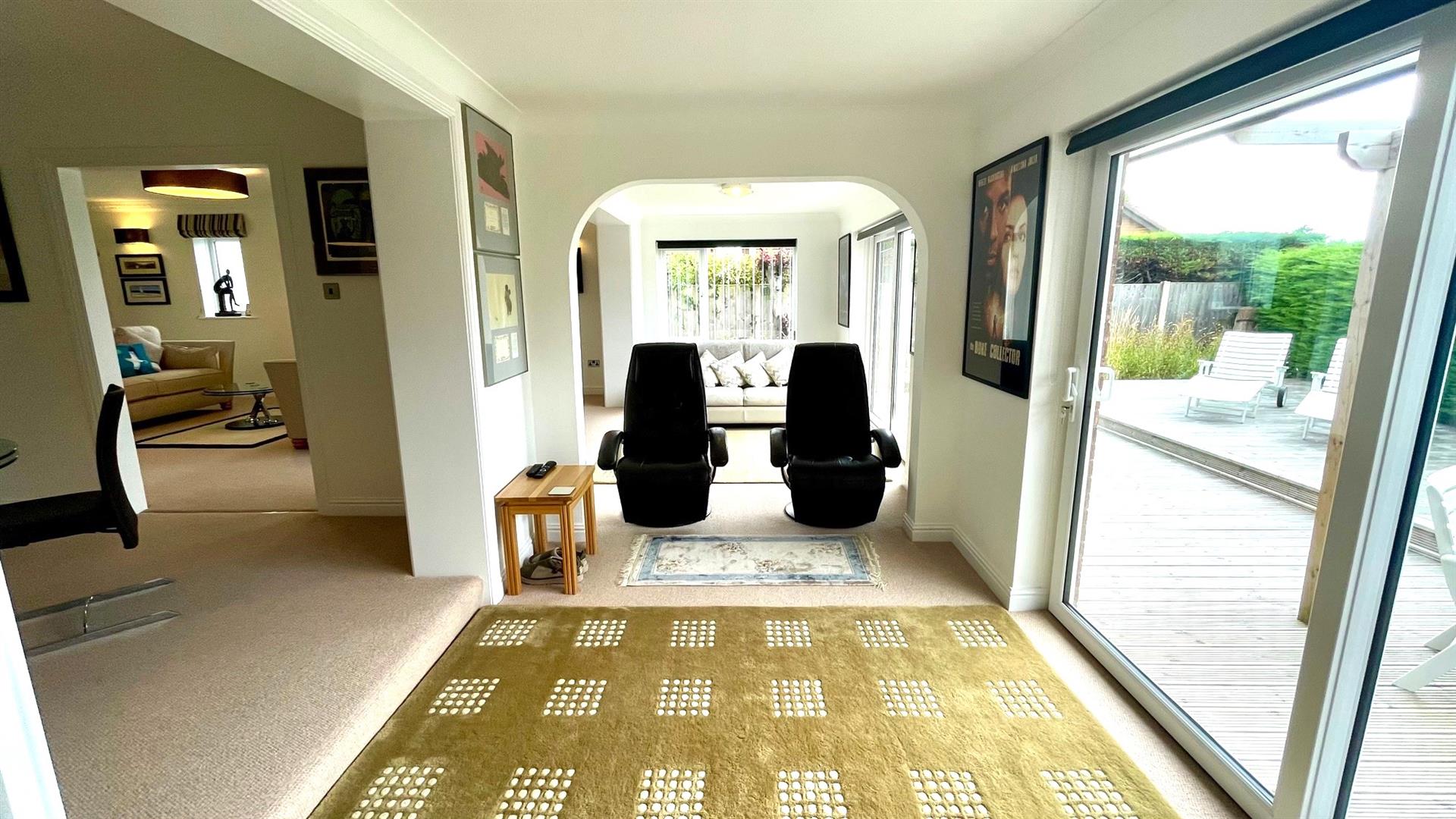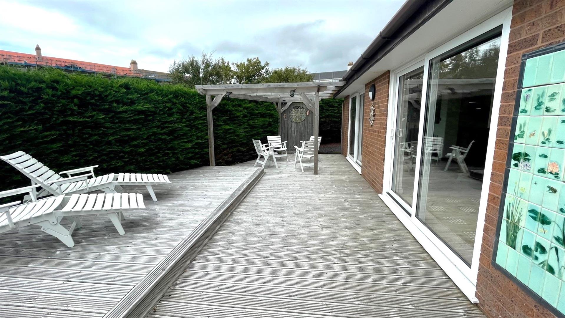 2 double radiators, coving, side aspect upvc double glazed window, 2 upvc double glazed patio sliding doors to decked seating area.