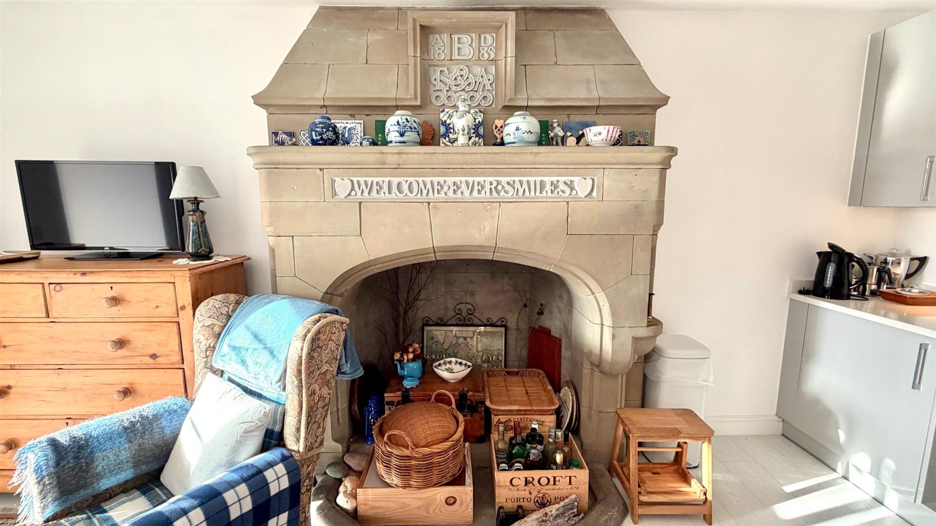 With feature original stone fireplace with hearth and display mantle dating back to 1885, wall mounted intercom video entry phone, two 'Dimplex' electric heating, laminate flooring.