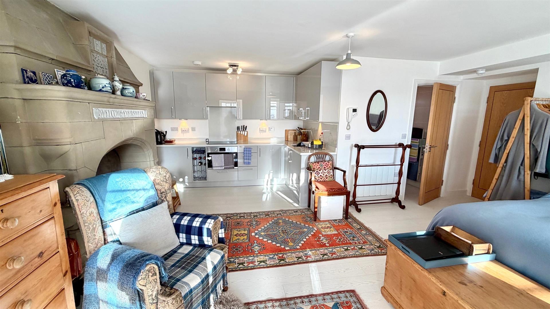 THIS IS A BEAUTIFULLY CONVERTED GRADE 2 LISTED BUILDING CREATING 33 APARTMENTS IN THE ORIGINAL DEGANWY CASTLE HOTEL AND PUBLIC HOUSE WITH VIEWS FROM THE FRONT ELEVATION TOWARDS CONWY CASTLE, ESTUARY, MOUNTAINS AND DOWN THE CONWY VALLEY, LOCATED ON THE DOORSTEP OF DEGANWY VILLAGE WITH ITS SHOPS, RAILWAY STATION AND BEACH.Converted c2018 this ground floor apartment accommodation briefly comprises: shared hall; self contained door to open-plan lounge/kitchen/dining room with original fireplace and en-suite three piece bathroom with over bath shower; a door from the lounge area leads to a bedroom with French doors leading to a patio having open views. The property features electric heating and double glazed windows. Outside – there are communal gardens to the front and an allocated parking space as well as visitors’ parking.The current owners have chosen to place a full sized double bed in the living area and use the front room as a veranda/sun room.