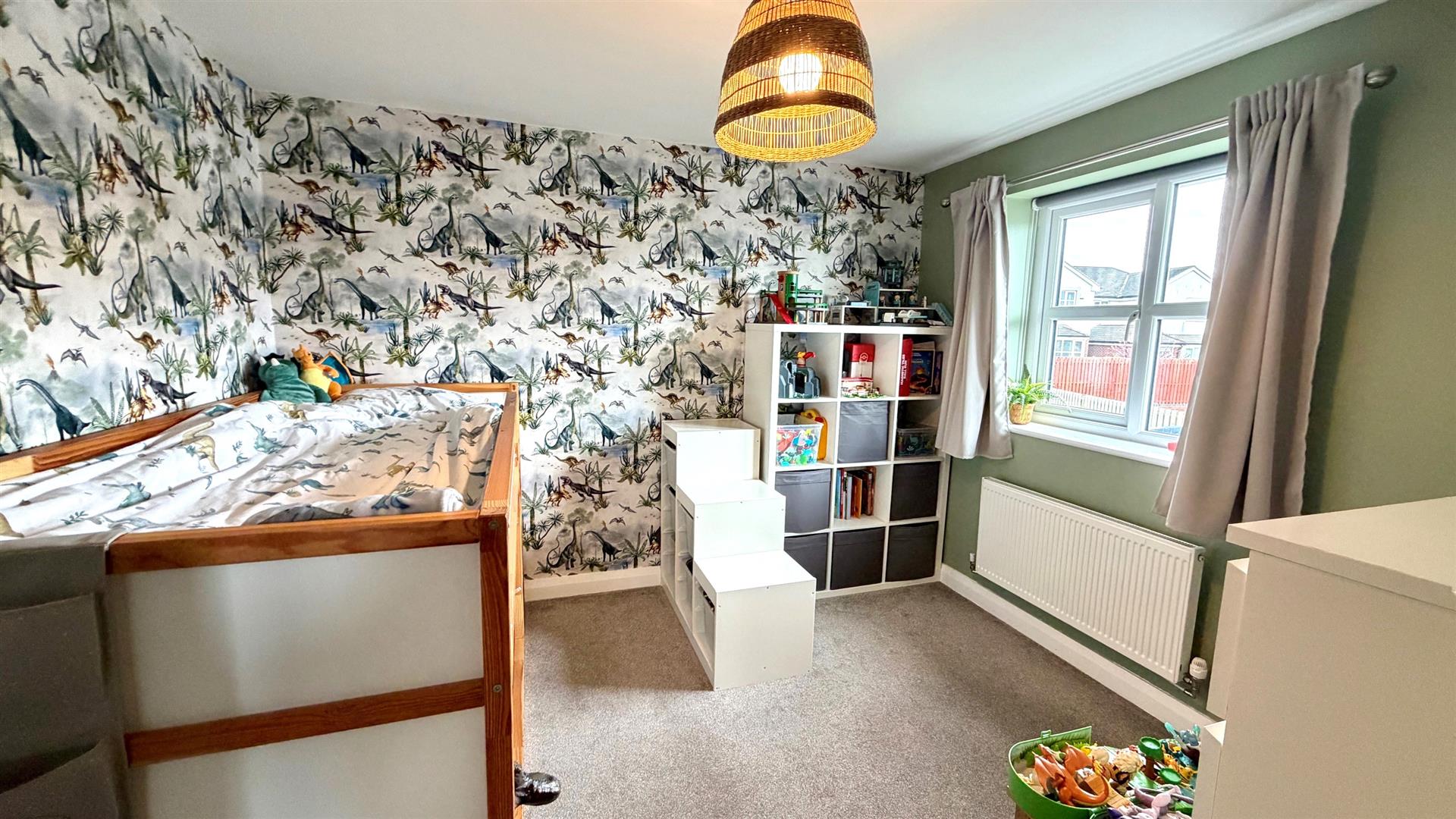 Plus built-in wardrobe, radiator, upvc double glazed window with view to the hillside over the Play Area.