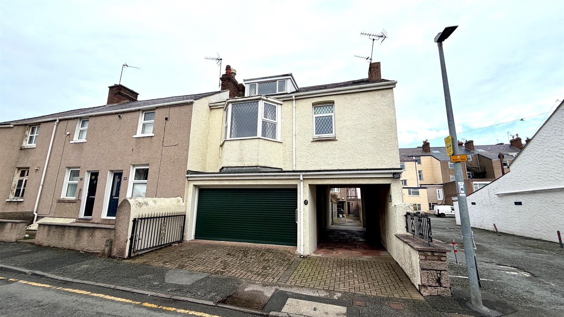 THIS UNUSUAL AND SPACIOUS END TERRACED THREE STOREY PROPERTY - situated in the heart of Craig y Don next to the shops and within 100 yards of the promenade. The accommodation briefly comprises:- side door to small hall; inner door to reception hall/study; ground floor utility room; first floor landing; lounge; separate dining room/3rd bedroom; kitchen; principal bedroom and 3 piece shower room; second floor landing; bedroom 2; 3 piece shower room and walk-in box room. The property features gas fired central heating from a combination boiler, upvc double glazed windows. Outside - there is a double garage with automatic roller door. Small rear garden.INTERNAL INSPECTION IS HIGHLY RECOMMENDED TO APPRECIATE THE SIZE OF THIS PROPERTY.
