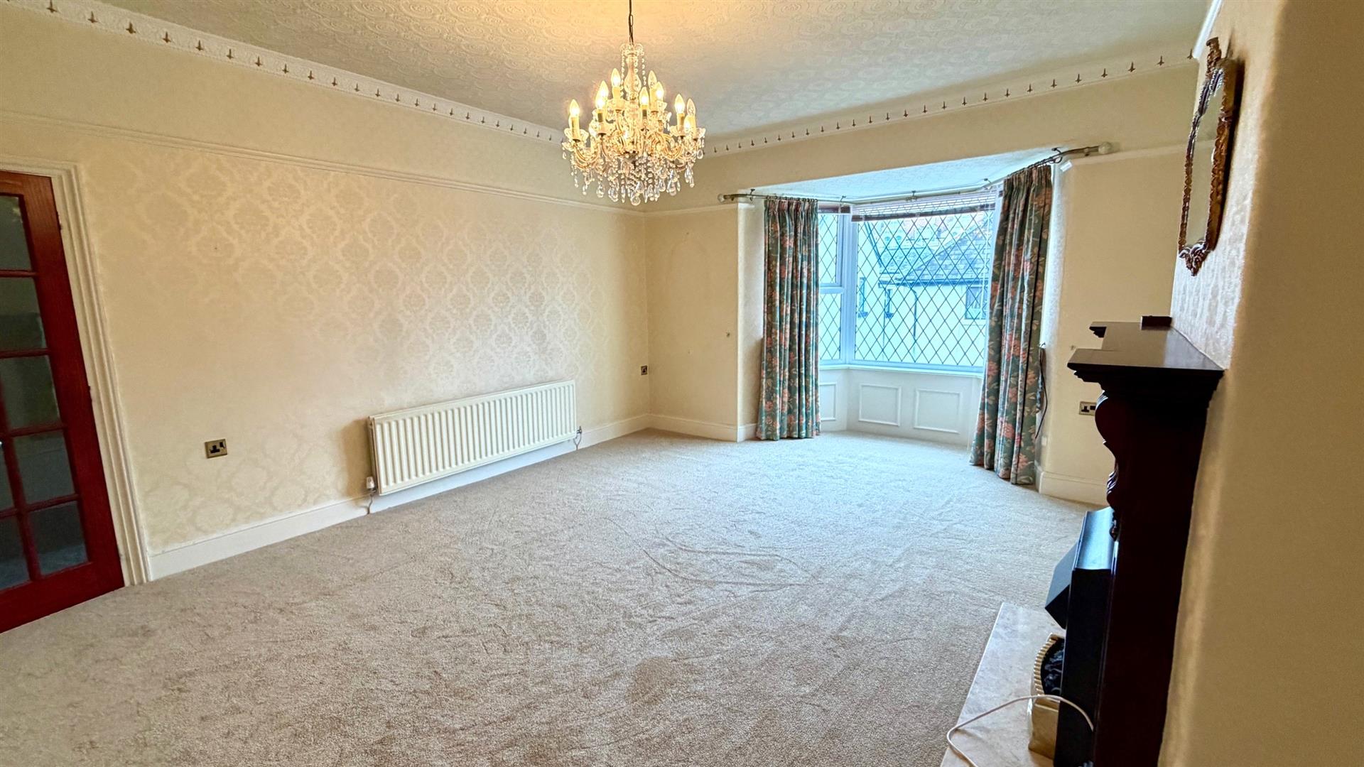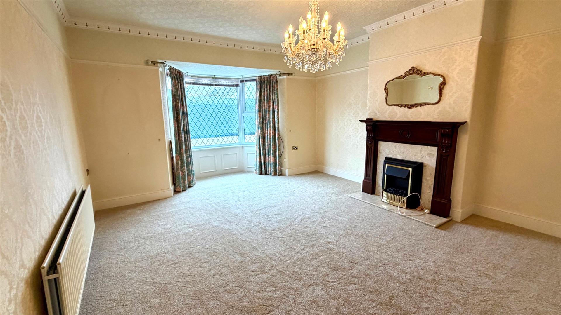 Into upvc double glazed bay window, picture rail, coving, fire surround with display mantle, Marble back and hearth, telephone point, double radiator.