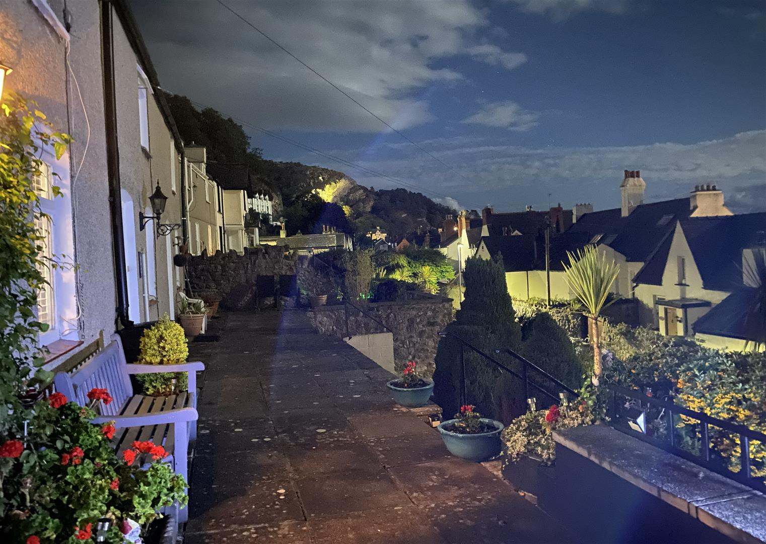 OUTSIDEPRIVATE OFF ROAD PARKING SPACEFRONT GARDENSteps leading up to an enclosed lawned garden bordered by mature shrubs and featuring a paved patio area, further steps to the front entrance and terrace which enjoys stunning panoramic views across Llandudno, West Shore and the Little Orme.