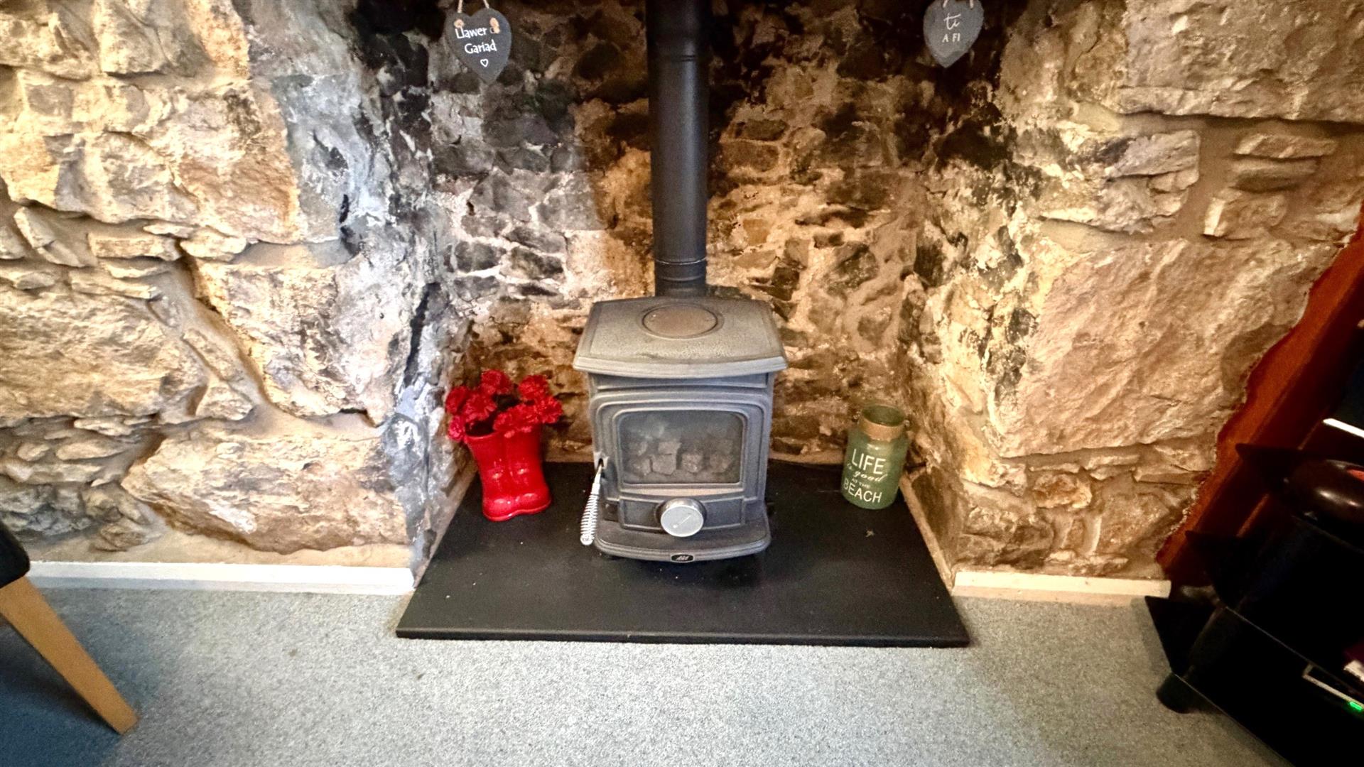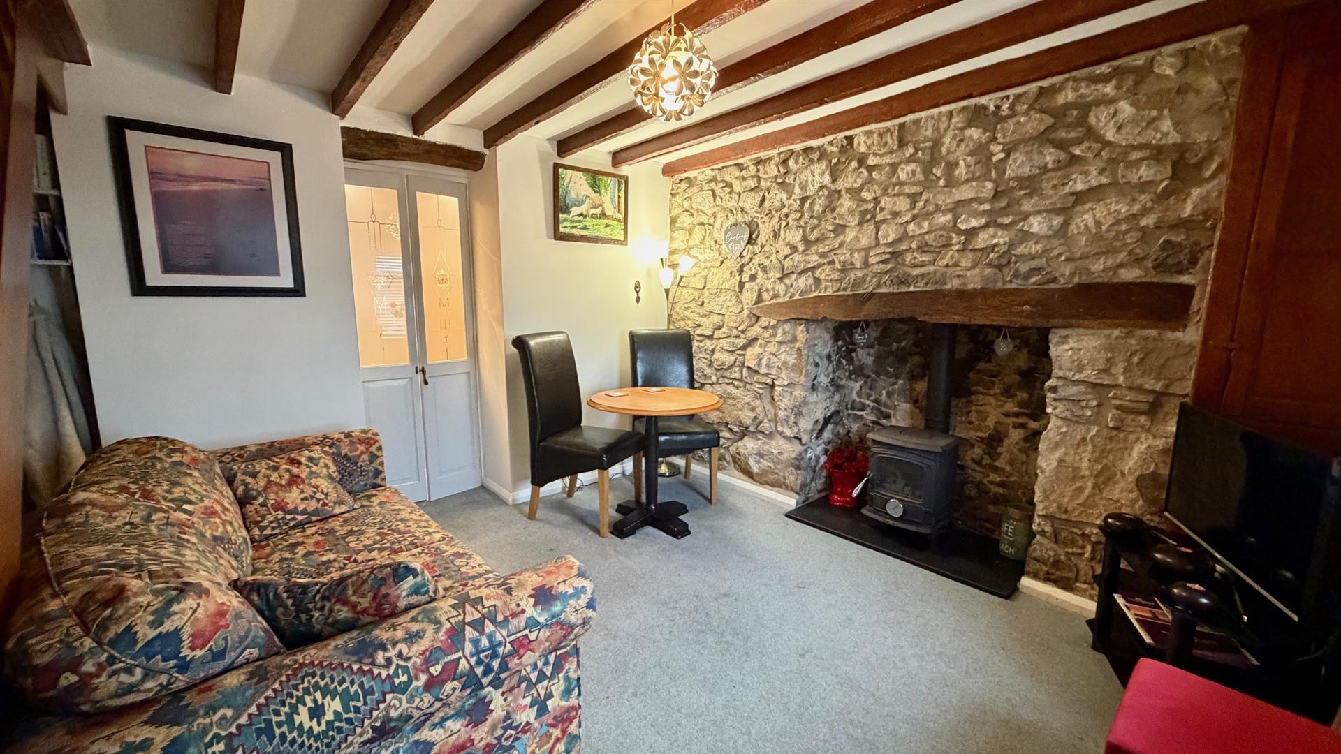 Featuring a stunning original stone fireplace with an inset gas fire, exposed timber beams, T.V. point, power points including USB, radiator, front facing window with views across Llandudno.