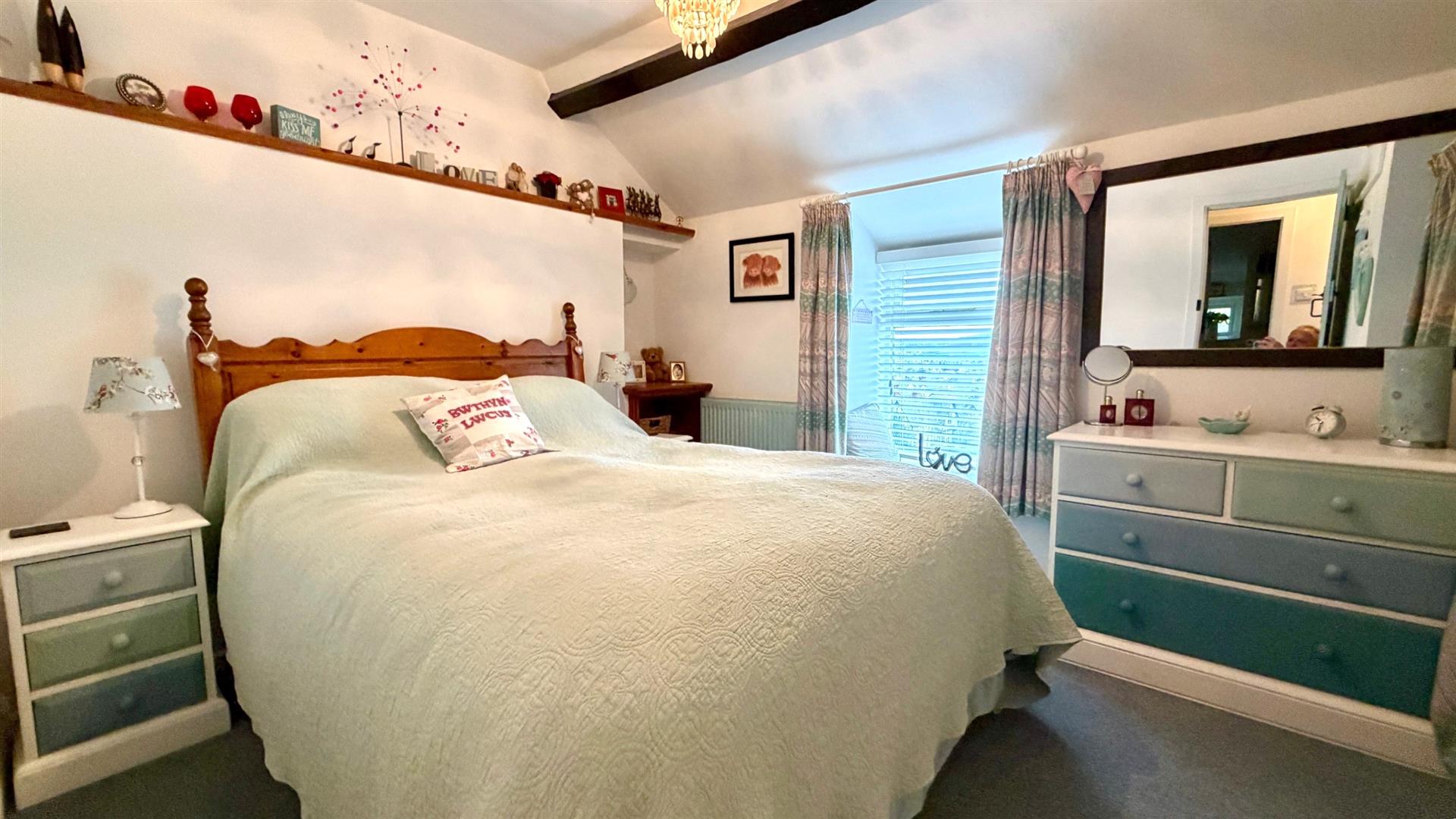 Wardrobe recess area and storage cupboard, T.V. point, power points including USB, radiator, window seat enjoying views across Llandudno.
