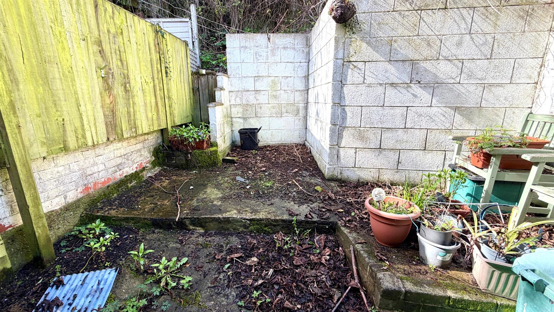 OUTSIDEREAR GARDENEnclosed walled concrete area with sitting area, gated pedestrian access to both sides.