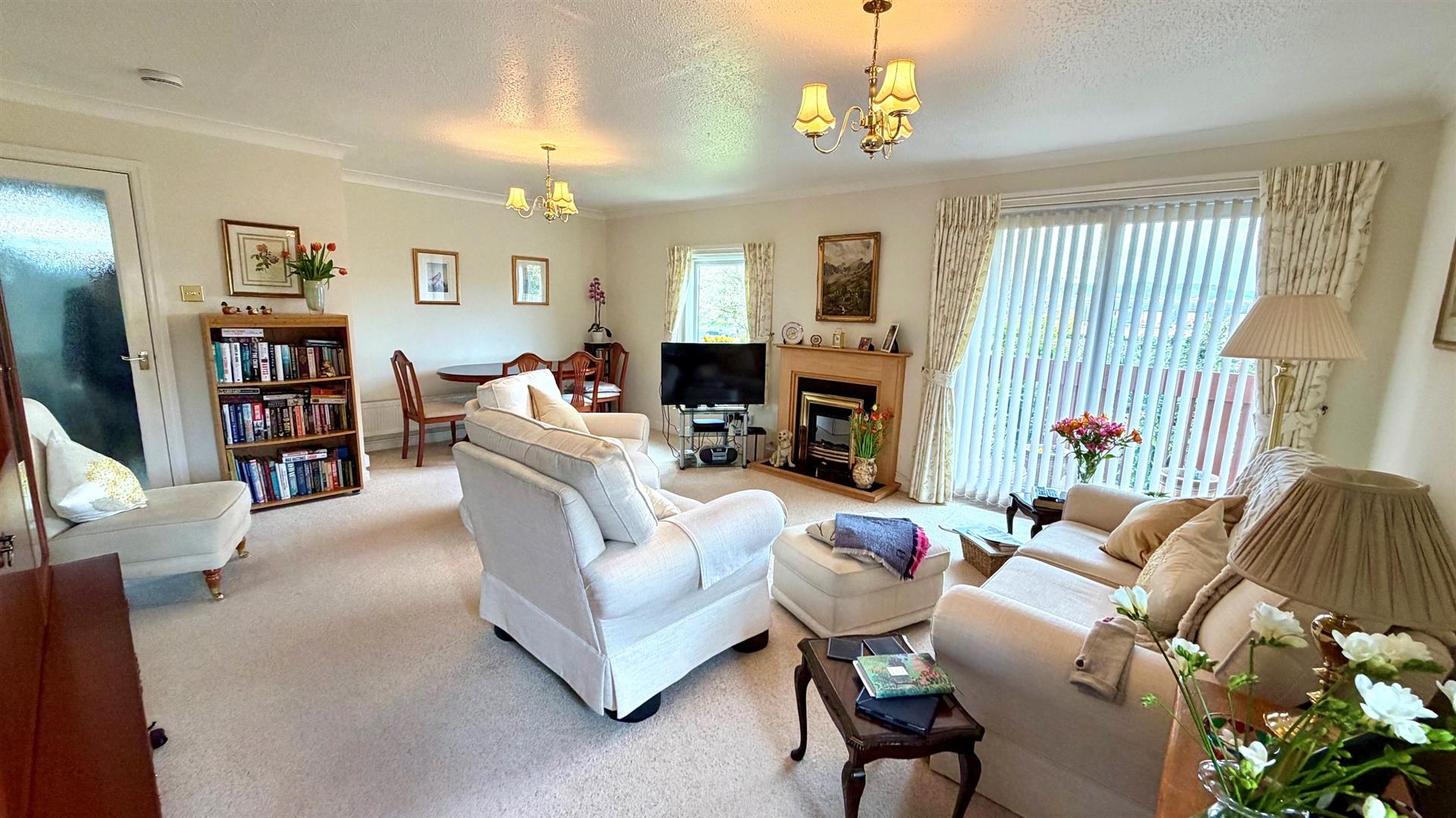 Fire surround with display mantle and hearth. electric living flame log effect fire, coving, 2 radiators, upvc double glazed window to rear and upvc double glazed sliding door to Balcony: