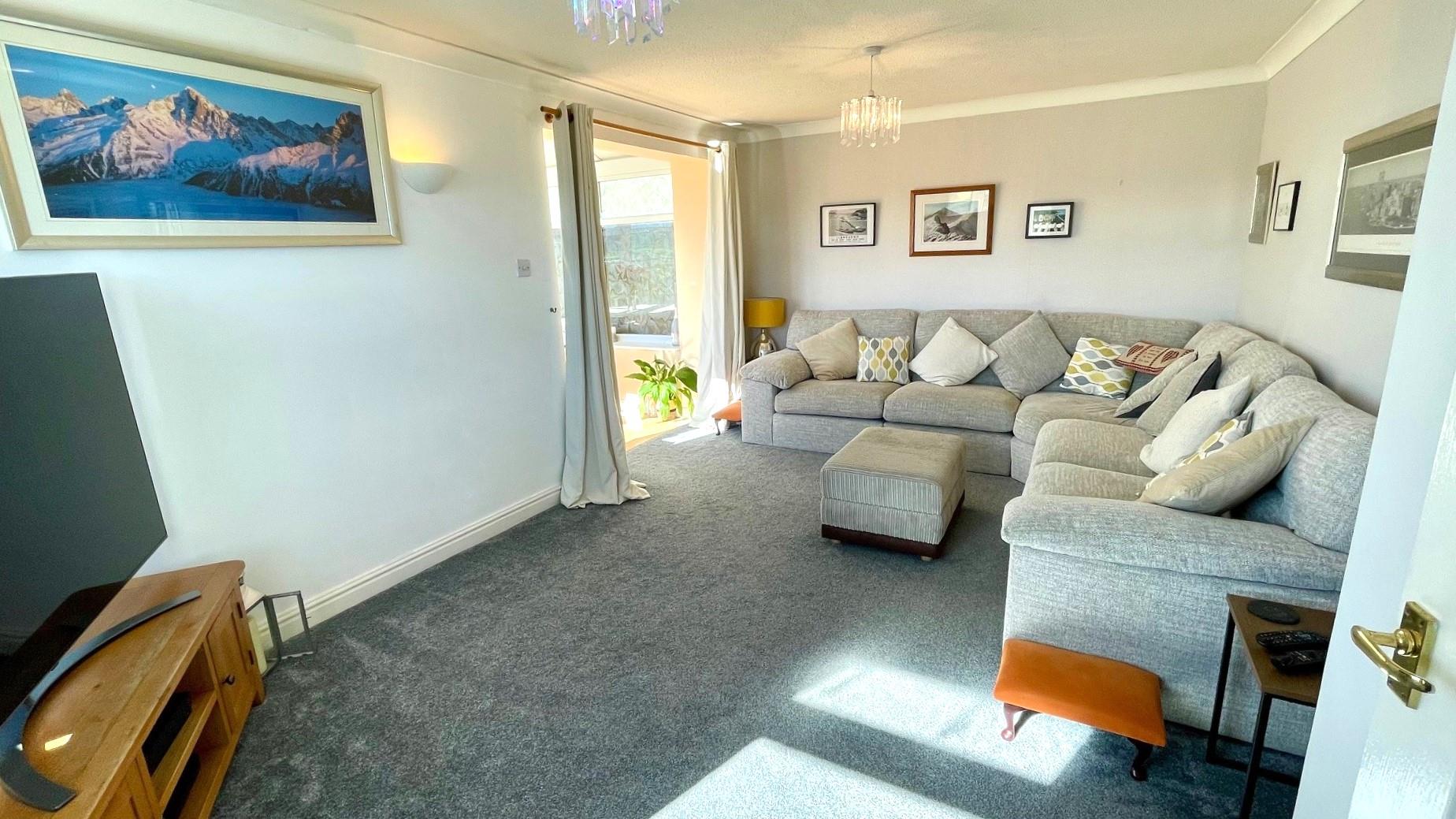 2 wall light points, coving, t.v point, Oriel window with deep display sill and upvc double glazed window with open views, double radiator. Opening through to:-