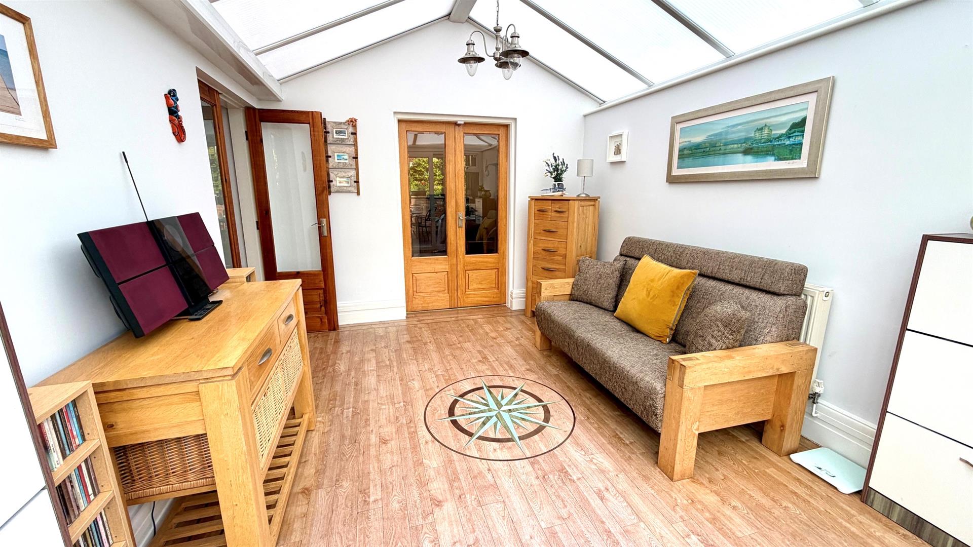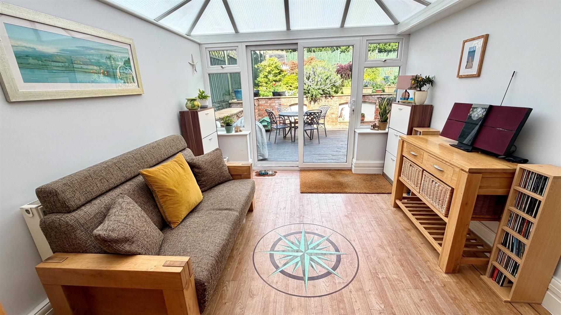 Upvc double glazed patio door to rear garden, radiator, tv point, 'Karndean' flooring.