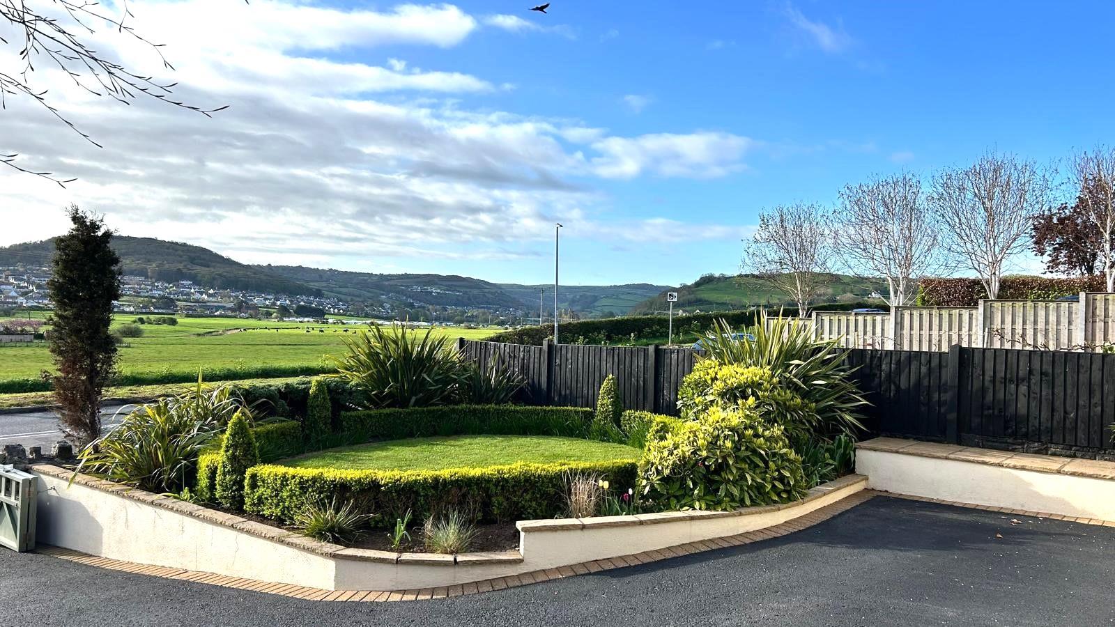 OUTSIDEFRONT GARDENShrubs, lawn with minature box hedge and flower beds. Off road parking for several cars.