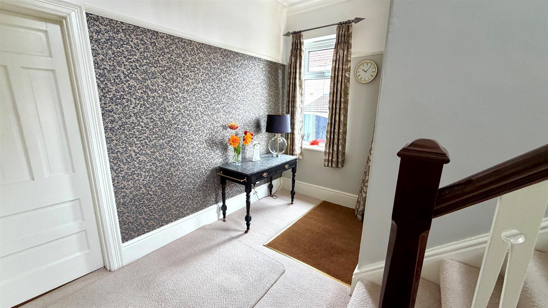 Bevelled FRONT DOOR TO:-HALLRadiator, coved ceilings, under stairs cupboard.