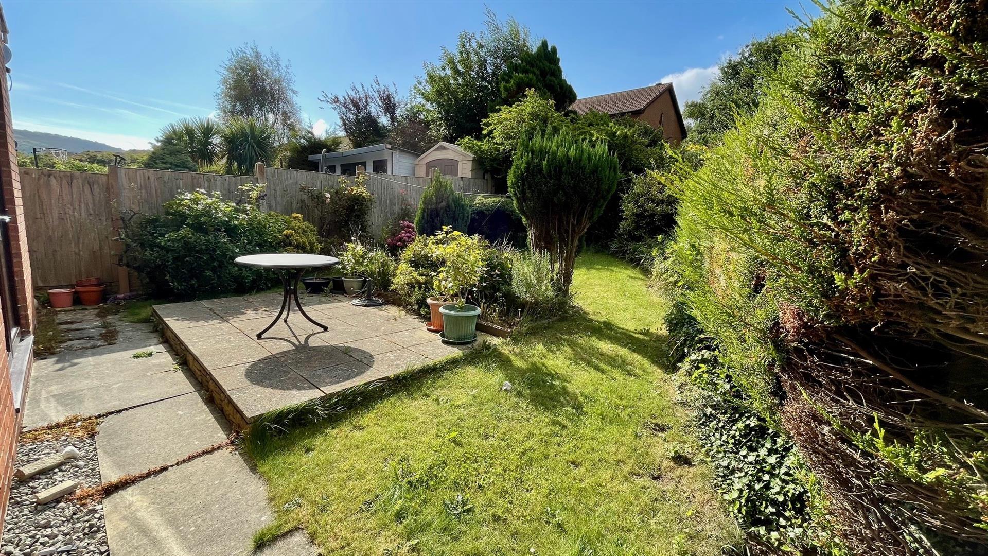 REAR GARDENWith lawn, flower beds, shrubs and patio area.