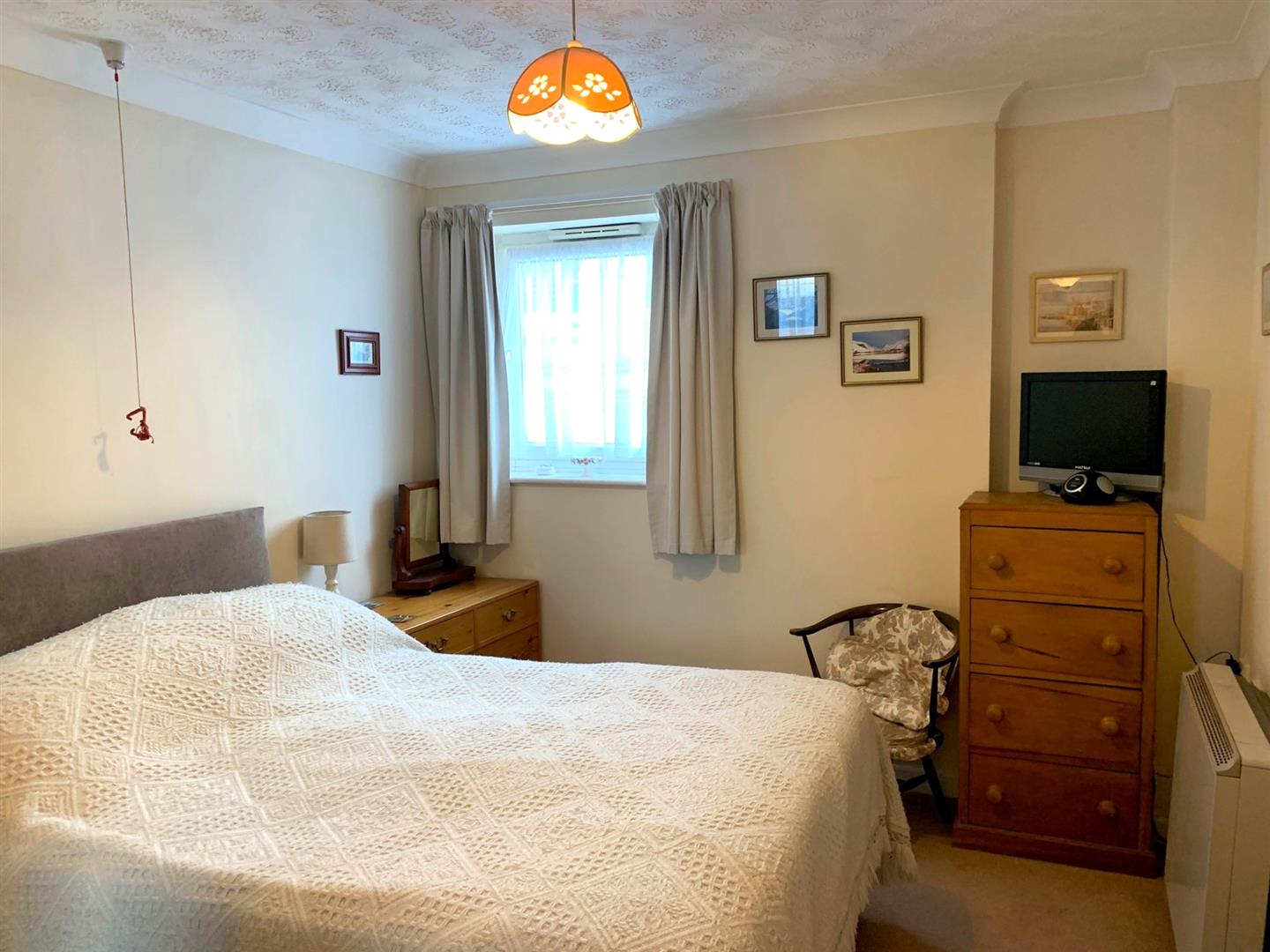 Plus built in wardrobe with mirror fronted folding doors, coving, Economy 7 heater, upvc double glazed window.