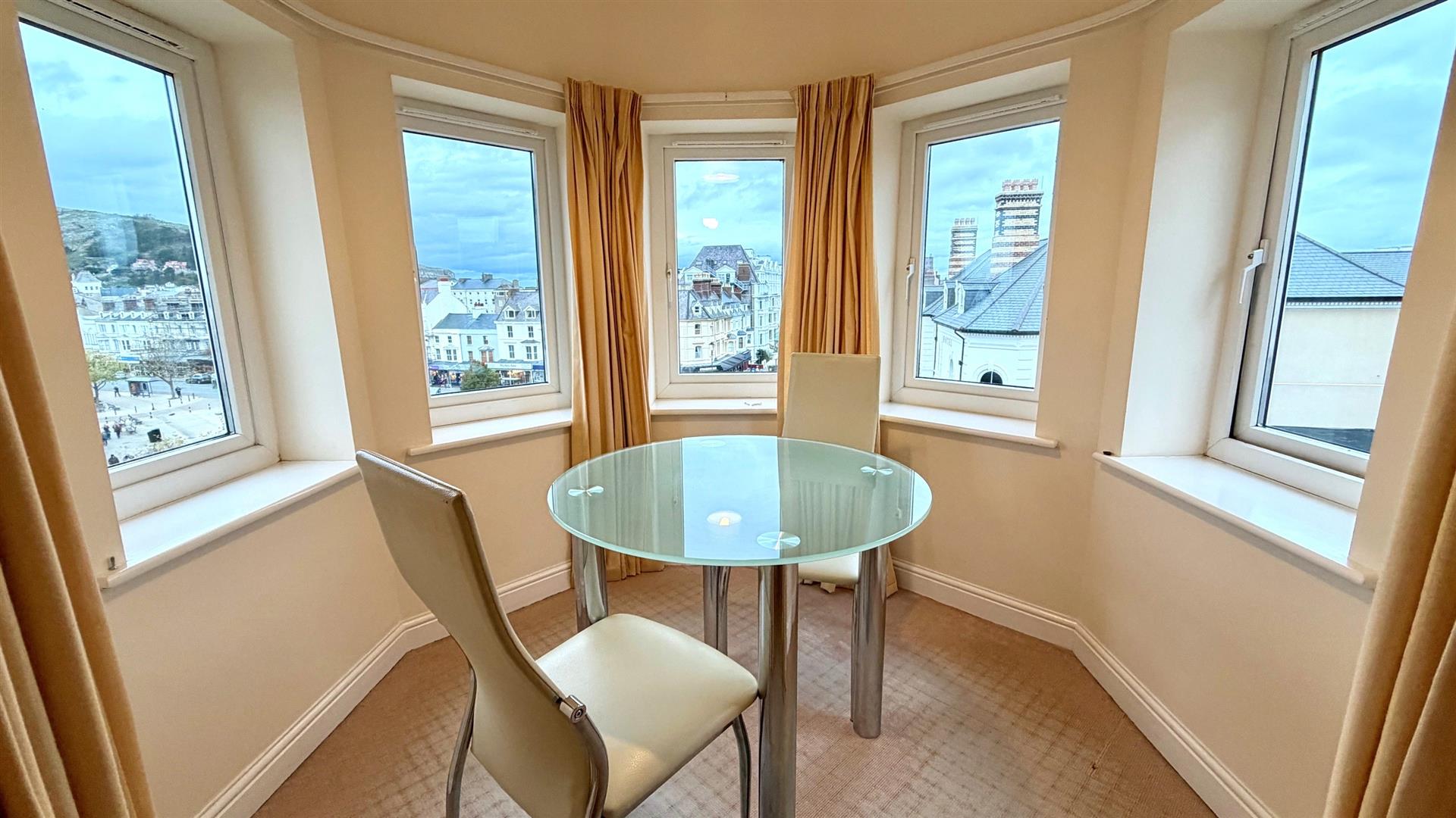 THIS LOVELY AND QUIRKY ONE BEDROOM PENTHOUSE PURPOSE BUILT APARTMENT is ideally situated in the Town Centre and within 300 yards of the Promenade. The accommodation briefly comprises:- security intercom to shared vestibule; shared hall; automatic lift and staircase to the top floor; self contained door to Apartment 30 ; hall; lounge/dining room with the dining area in the turret with views over Llandudno and to the sea; kitchen; one bedroom and a 3-piece shower room. The property features electric heating, upvc double glazed windows and a secure parking space on the first floor. The property is held on Leasehold Tenure over a 150 year term from September, 1993 with an annual ground rent of £50.00. The service charge for 2025 is £1,450.00.NO PETS ALLOWEDNO HOLIDAY LETTING ALLOWED