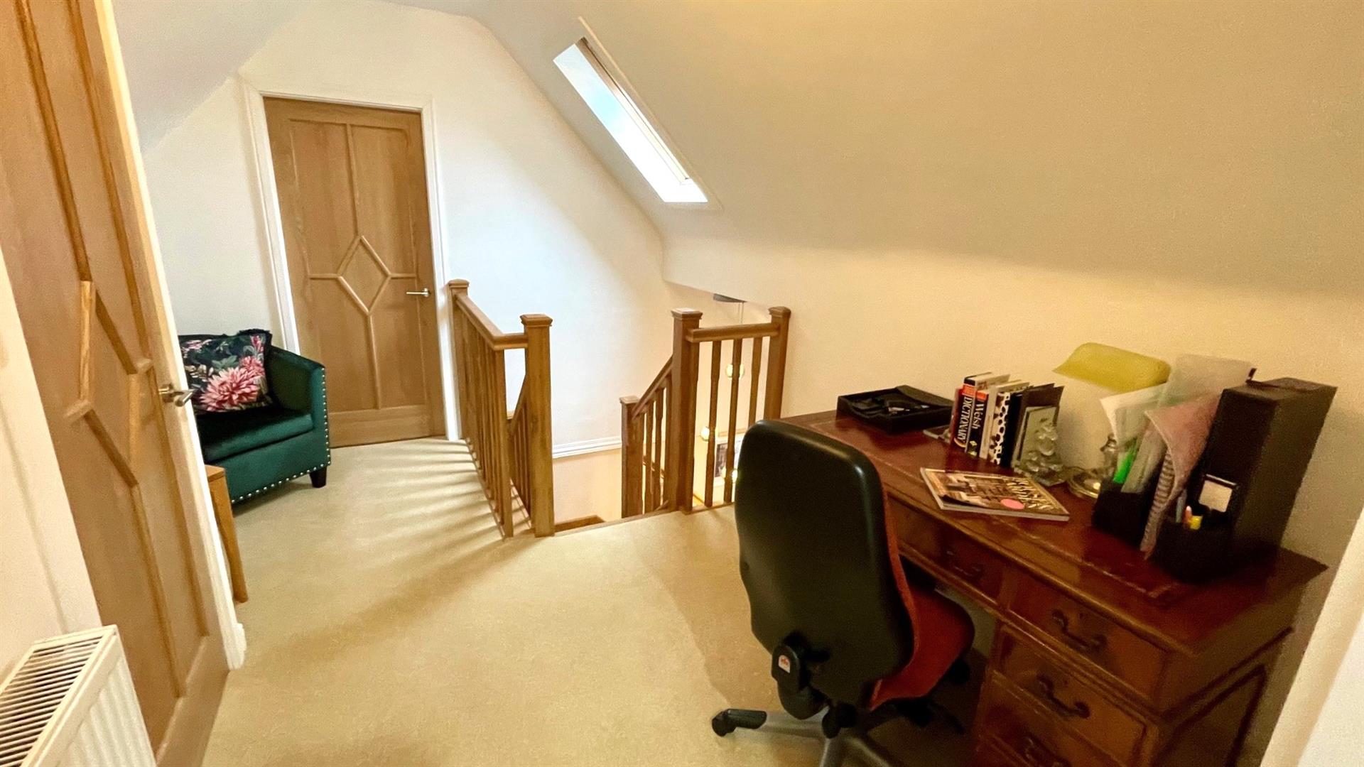 FIRST FLOOR LANDING/ STUDY AREA'Velux' double glazed skylight window, double radiator, cupboard housing gas fired 'I-mini2' combination central heating and hot water boiler.
