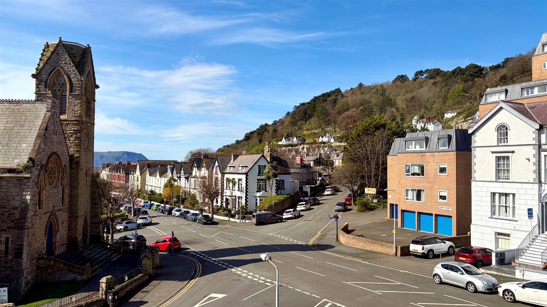 THIS BEAUTIFUL TWO BEDROOM PENTHOUSE APARTMENT IS FULL OF CHARACTER AND HAS VIEWS TOWARDS THE DISTANT HILLS AND THE GREAT ORME, SITUATED CLOSE TO ALL OF LLANDUDNO’S AMENITIES INCLUDING THE PROMENADE AND THE PIER.The accommodation briefly comprises:- external staircase to first floor; self-contained door to Apartment 4; staircase to top floor landing; double aspect lounge with square arch to dining room; kitchen with a range of modern units and built-in appliances; two double bedrooms and a tiled three piece bathroom with over bath shower. The property features gas fired central heating and upvc double glazed windows, where specified. Outside – small communal garden area and a single car parking space. The property is held on a LEASEHOLD tenure. Service charge of £100.00 per month.