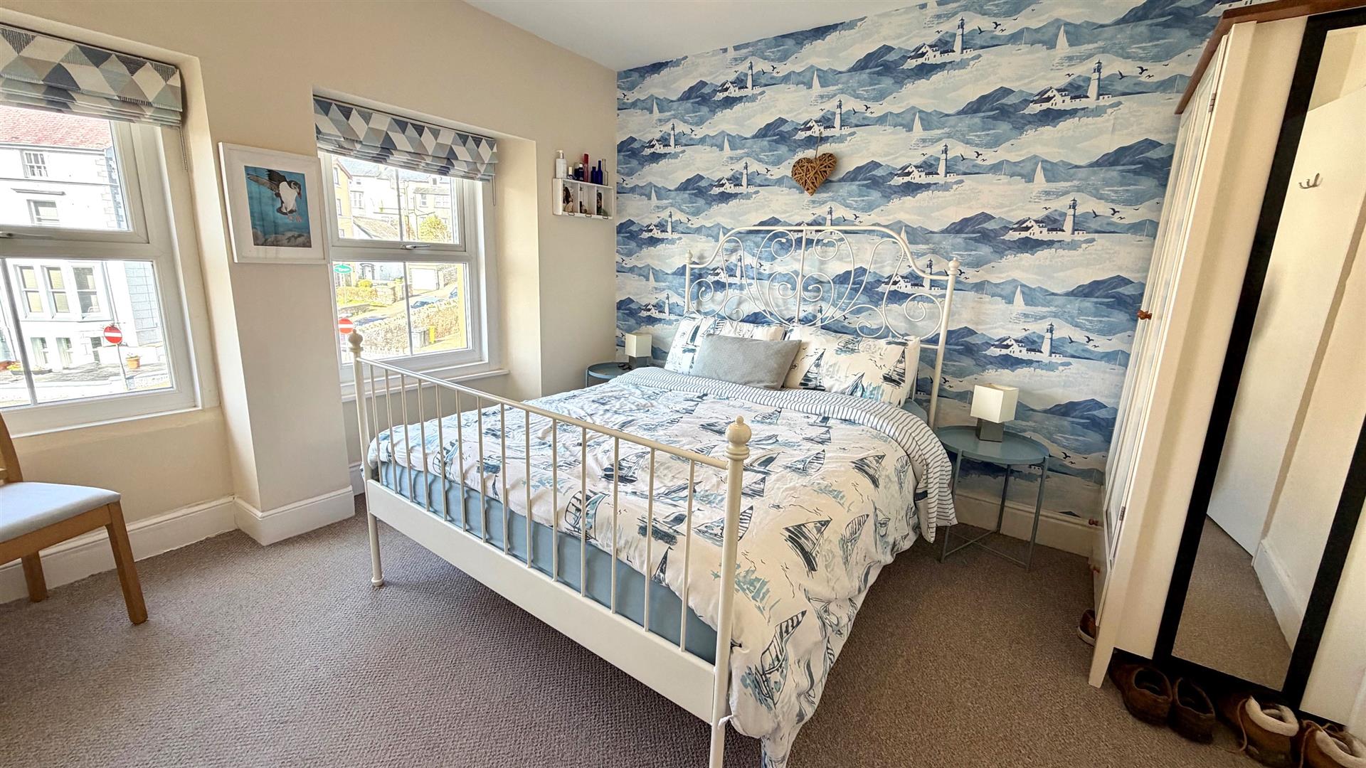 Fire surround, two double radiators, upvc double glazed window, two single glazed curved windows with views to the Great Orme.